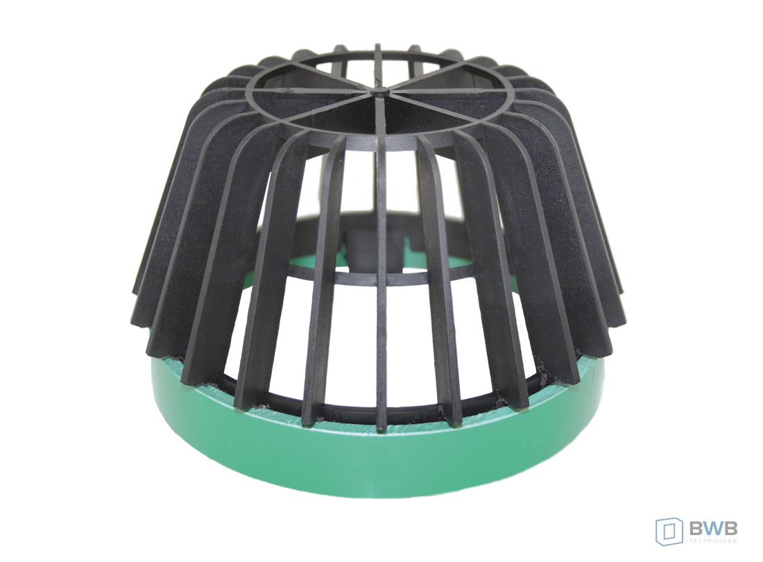 | TYP LES 110-12 – podstawa do budowli wykonywanych z betonu na miejscu | posiada odporną na wodę pod ciśnieniem, obwodową, termicznie zgrzewaną uszczelkę czterożebrową, do późniejszego zastosowania przyłącza LES – Vario, sita do wyłapywania liści LES i blokady przeciwzapachowej LES |