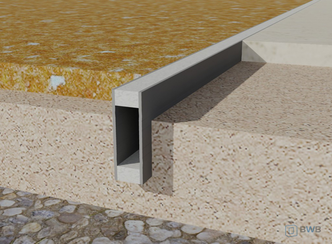 Profil rozdzielający posadzki wykonany z twardego i miękkiego PVC z elastyczną częścią środkową. Profilu przeznaczony do okładzin podłogowych o małych obciążeniach. Znajduje zastosowanie w posadzkach wykonanych z jastrychu, wykładanych kamieniem naturalnym, imitacje kamienia itp.