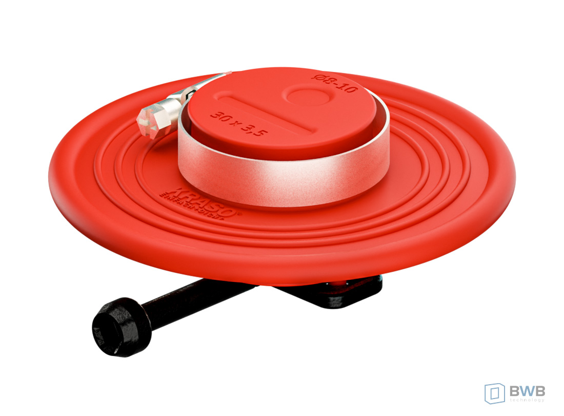 Zakres dostawy: kołnierz ścienny KRASO® odgromowy z kluczem dynamometrycznym KRASO®, dwa paski ze stali nierdzewnej.