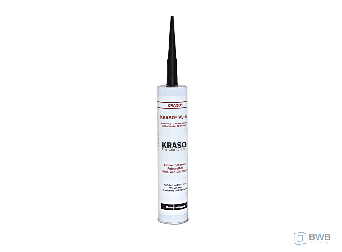 KRASO® PU 50 to jednokomponentowa masa klejąco uszczelniająca koloru czarnego. Ulega wulkanizacji pod wpływem wilgoci obecnej w powietrzu do postaci trwale elastycznej masy. Przeznaczona jest do klejenia w ogólnych zastosowaniach przemysłowych, budownictwie, przemyśle samochodowym i lotniczym. Masa KRASO® PU 50 ma bardzo dobre, na ogół nie wymagające podkładu przyleganie do wielu podłoży, takich jak stal, stal nierdzewna, aluminium, tworzywa sztuczne takie, jak poliester i wiele rodzajów PCV oraz na farbach, betonie i murach. Polecamy ten produkt do montażu kołnierzy foliowych KRASO®.
