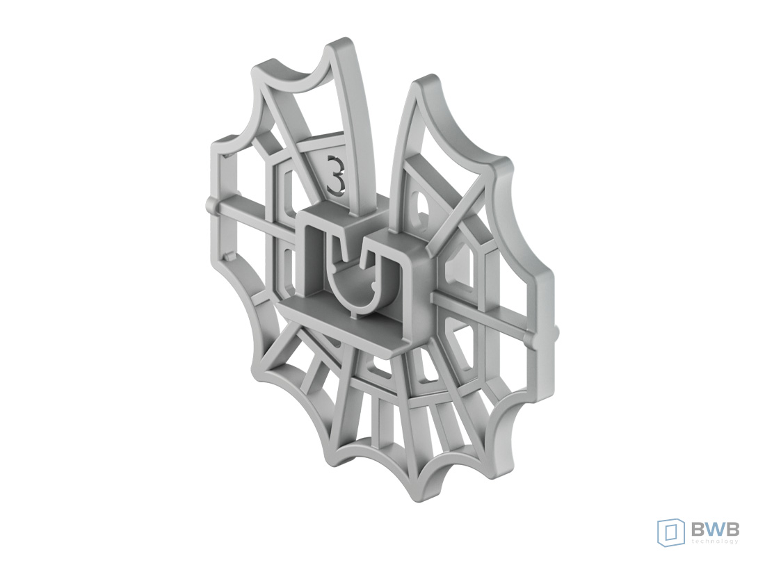 - Element dystansowy do pół – lub w pełni automatycznego montażu na prętach zbrojeniowych o średnicy od 6 do 10 mm