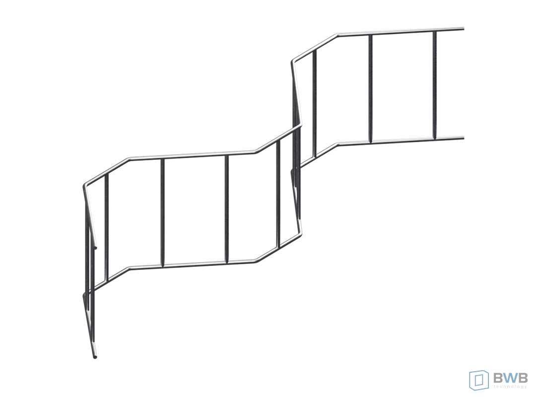 - Długość prętów podłużnych to 240 cm, natomiast wymiary podkładki w rzucie to ok. 200×20 cm