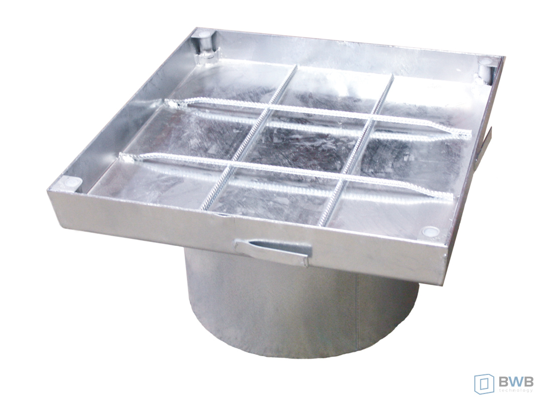 - Pokrywa Poly 400 – do wypełnienia – wodoszczelna, nieprzepuszczająca zapachów – obciążenie ruchem kołowym – ok. 125 kN długość krawędzi 53 cm, ocynkowana, obciążenie w przypadku wypełnienia betonem klasy C 35/45: ok. 125 kN, obrotowa rama montażowa z regulacją wysokości od 8 – 25 cm