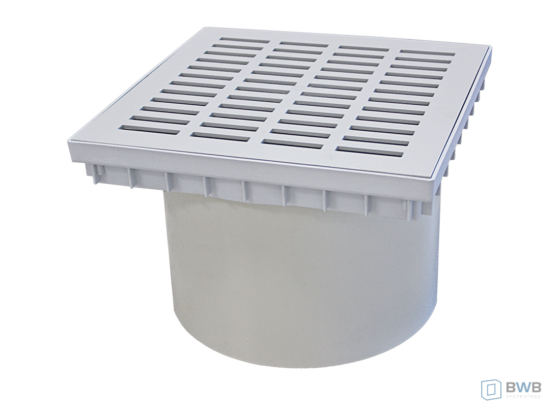 - Pokrywa z kratki szczelinowej Poly 400 – obciążenie ruchem pieszym – plastikowa rama i osłona wydajność ok. 3,9 l/sek., obrotowa rama mocująca z regulacją wysokości od 2 – 20 cm, długość krawędzi 46 cm