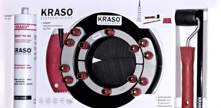 Jednym z nich jest Kołnierz zaciskowy z izolacją KRASO® FKF. Materiał fragmentu izolacji możemy dostosować indywidualnie do połączenia z izolacją ścian lub fundamentów. Kołnierz zaciskowy z izolacją KRASO® FKF występuje również w wersji dzielonej dlatego nie ma potrzeby demontować przyłącza. W zestawie znajduje się wysokiej jakości materiał klejąco-uszczelniający KRASO® PU 50 ułatwiający przyklejenie fragmentu izolacji. Kołnierz zaciskowy z izolacją KRASO® FKF gwarantuje wodoszczelność do 25 metrów słupa wody.